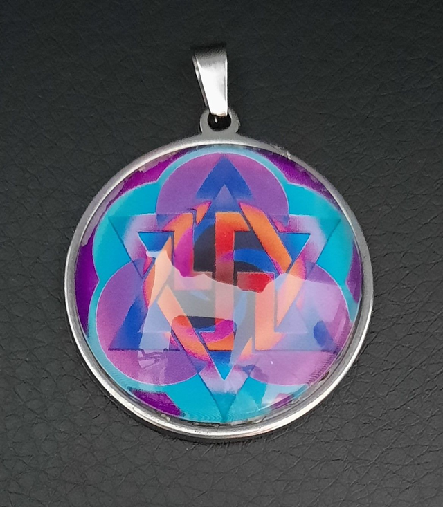 • Pendant composed of a piece of Glass round crimped on a Inox plated Metal mounting.